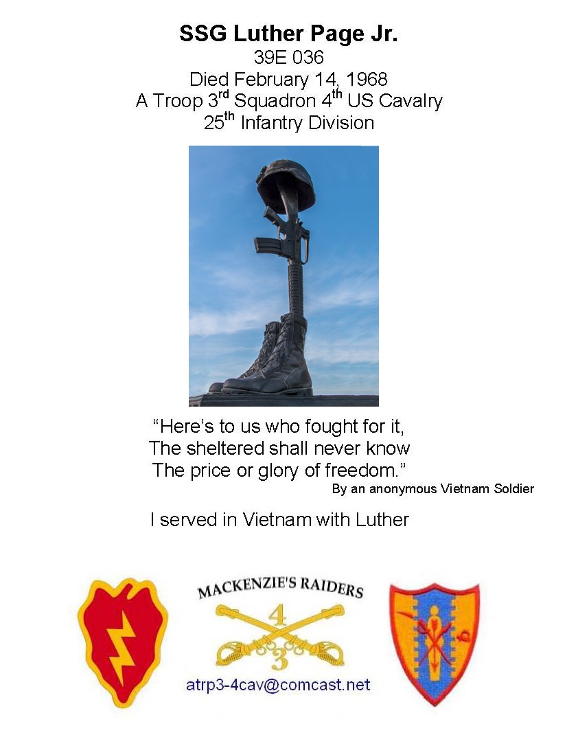 February 14, 1968. Added to the Vietnam Memorial in 1997. From
