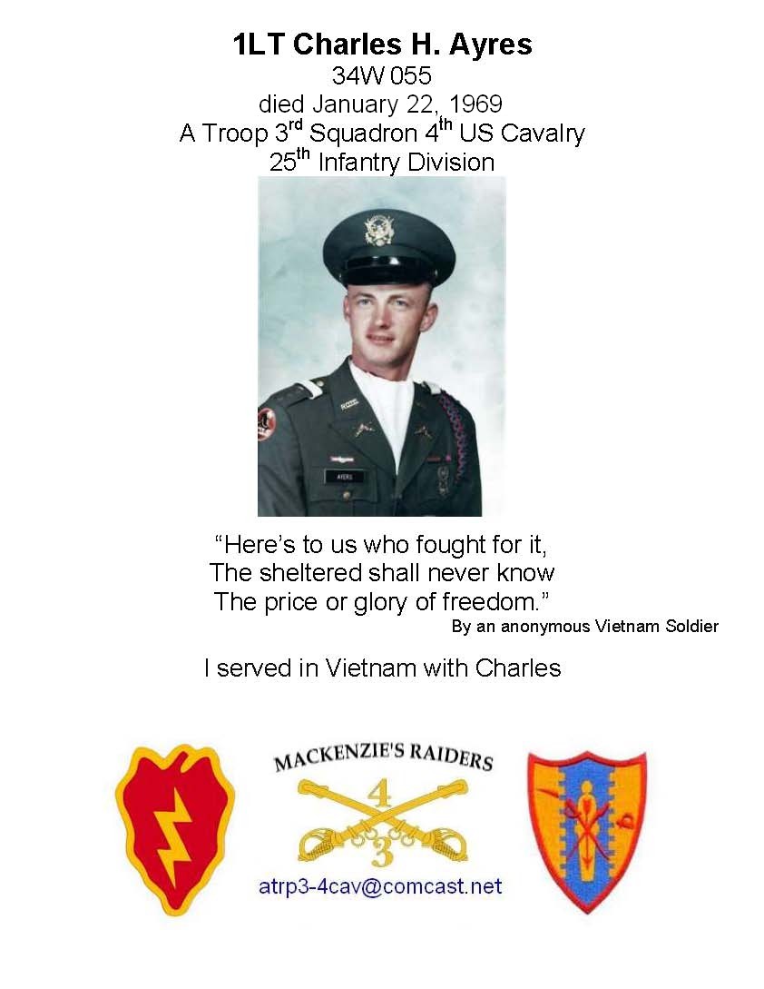1LT Charles H Ayres died January 22, 1969 23 yrs old from TN