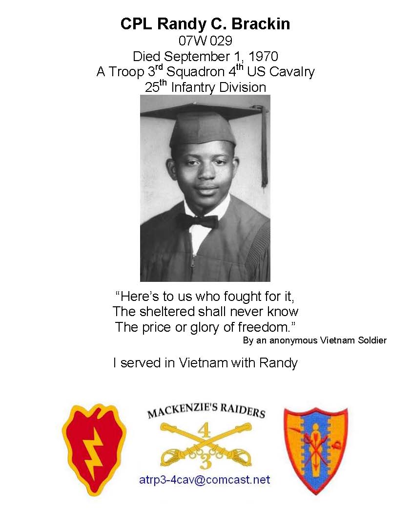 CPL Randy C Brackin died September 1, 1970 20 yrs old from AL.