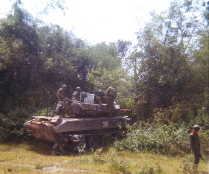 Note 1: Entries that include an exact time or grid coordinates have been extracted from offical documents. If no time is provided it is a recollection from a unit member. Note 2 Email us and provide additions or corrections for this timeline. Jun 9 Summary: A Trp secured Rome Plows. Closed into Cu Chi base camp to conduct stand-down. (CPT Hogue assumes command). 0030 A Trp has a negative SITREP. 0520 A Trp stand-to complete. 0810 A Trp departing NDP. 1215 A Trp and convoy on the road moving back to Cu Chi. 1224 A Trp tail of convoy at XT443330. 1229 A Trp tail of convoy at XT436316. 1240 A Trp tail of convoy at XT453289. 1244 A Trp lead of convoy at XT387252. 1304 A Trp lead at CP19 & tail at CP05. 1322 A Trp lead at CP07 & tail at CP19. 1330 A Trp lead at CP08 & tail at CP07. 1349 A Trp lead at CP16, tail at CP07, low boy has a flat tire vicinity of CP07. 1419 A Trp lead at Cu Chi & tail at CP07. Jun 10 Summary: A Trp on stand-down at Cu Chi. Jun 11 Summary: A Trp on stand-down at Cu Chi. Jun 12 Summary: A Trp on stand-down at Cu Chi. Jun 13 Summary: A Trp departed Cu Chi. A Trp conducted a reconnaissance-in-force. Closed NDP at 1635hrs. 0002 A Trp has a negative SITREP. 0718 A Trp departing motor pool at Cu Chi. 0826 A Trp has a Skylark catch fire in the vic of CP 07, negative casualties. 0856 A Trp lead at XT458253. 0900 A Trp lead at XT454265. 0910 A Trp lead at CP18. 0957 A Trp location XT453318. 1040 A Trp location XT497312. 1200 A Trp completed class I and continuing mission. 1210 A Trp location XT492313. 1226 A Trp location XT518333. 1322 A Trp location XT525336. 1545 A Trp location XT516308. 1635 A Trp closed NDP XT455282. 1645 A Trp trains closed NDP. 1803 A Trp NDP at XT476318. 1848 Maj Acree gave A Trp permission to test fire between 40 degrees and 80 degrees. 1923 A Trp test firing at this time. 2025 A Trp radar status: Right 3867 mils, left 1923 mils, center 2900 mils, at 2000 meters. 2326 A Trp has a negative SITREP. Jun 14 0030 A Trp has a negative SITREP. 0730 A Trp trains departing the NDP. 0832 A Trp moved from NDP. 0916 A Trp location XT511307. 1000 A Trp location XT529308, holding in place to check out a wood line. 1030 A Trp location XT541309. 1115 A Trp breaking for class I. 1150 A Trp completed class I &: continuing RIF. 1225 A Trp location XT536336, Skylark threw a track. 1331 A Trp on the move again. 1414 A Trp location XT532328. 1552 A Trp location XT516322. 1626 A Trp at XT492302. 1700 A Trp 1500 meters north of CP18, enroute to NDP. 1702 A Trp at CP18. 1707 A Trp at CP06. 1720 A Trp lead at CP05. 1728 A Trp at CP21. 1749 A Trp NDP XT371314. 2315 A Trp has a negative SITREP. Jun 15 Summary: A Trp conducts a reconnaissance-in-force 3/4 miles north of Trang Bang. During sweep to the east a firefight occurs with enemy forces at XT482243. The company sized enemy force is dug-in in fortified positions. Co B, 1/5 Mech responded to establish a blocking positon. Also responding were the CRIP element of 1/12 Infantry and a RVN Regional Force Company. Received constant AK, RPG, & AW fire from 10:16hrs to 1800hrs. Artillery, air strikes and helicopter gunships were employed to attack the fortified positions. During the clearing of the bunkers 12 soldiers are wounded and Sgt. Alton Phillips is KIA. (photo/shadowbox) A large number of enemy bodies were found in the area after the contact was over. A Trp moves to a FSB for the night and the remaining 6 wounded are evacuated to Cu Chi Base Camp. 0030 A Trp has a negative SITREP. 0545 A Trp Stand-to is complete. 0815 A Trp departs NDP. 0830 A Trp lead CP21. 0838 A Trp lead CP05. 0855 A Trp lead CP06. 0856 A Trp trains departing FSB Hampton. 0905 A Trp at CP18. 0915 B Trp in contact at XT488239. 0937 B15 took 2 RPGs. Light causalties. 0941 A Trp enroute to contact area. 1016 A Trp arrived at contact area. 1056 A Trp reports 6 to 10 people running into woodline on a 20 degree azimuth 400 meters from their location. A Trp moving out to check it out. 1309 1/5 Inf elements OPCON to 3/4 Cav receiving small arms fire on their blocking position. 1329 B Trp Skylark & APC hit by RPGs. 1416 A Trp receiving AK47 fire from hootches on left flank. 1500 A Trp checking out bunkers at this time. 1504 A Trp received RPG rd. 1435 1/5 Inf receiving AK fire from hootches. 1510 A Trp requests 1 urgent dustoff. 1511 Dustoff ship leaving Cu Chi. 1513 B Trp receiving AK fire from bushes to the rear. 1515 Dustoff is complete. 1518 Gun Team on station at 1/5 Inf location. Sniper fire still continuing from hedgerow. 1522 Arty is being put in area where 1/5 Inf is receiving sniper fire. 1530 A Trp requests dustoff for 1 ambulatory WIA. 1536 Dustoff is complete. 1544 A Trp reports 50% on ammo. 1600 A Trp has an urgent litter dustoff. Centaur 28 is dustoff. 1606 A Trp's dustoff is KIA. (Sgt. Alton Phillips is KIA, (photo/shadowbox) 1609 Dustoff is complete. 1619 A Trp reports 2 body count, no documents or weapons. 1632 A Trp has a Sheridan on fire, holding until fire is out. 1703 B Trp took an RPG from the left flank. 1707 A Trp requests an urgent dustoff, litter. Centaur 28 is enroute. 1708 Centaur 28 not needed. Div CG will dustoff. 1709 B Trp raking the RPG positions. 1711 Dustoff is complete. 1713 Forward Air Controller is on station. 1714 B Trp requests dustoff, urgent & A Trp has a heat victim. Centaur 28 is enroute. 1719 Another gun team is on station. 1722 Dustoff is complete. 1727 CS is on station. 1831 A Trp & B Trp enroute to Hampton. 1926 A10 & A20 are in FSB Hampton. A30 is at CP06. 2003 A Trp all elements closed in FSB Hampton. 2055 Cu Chi took 4 rockets. 2 landed in the 3/4 Cav area. Negative damage or casualties. 2105 A Trp has a negative SITREP. 2206 A Trp vehicle status: A10 5 APCs, 1 M551; A20 7 APCs, 0 M551s; A30 7 APCs, 1 M551. Jun 16 Summary: A Trp conducted a reconnaissance-in-force. 0030 A Trp has a negative SITREP. 1124 A Trp leaving FSB Hampton. 1208 A Trp location XT468266. 1335 A Trp reported finding 2 VC bodies in a bunker. 140