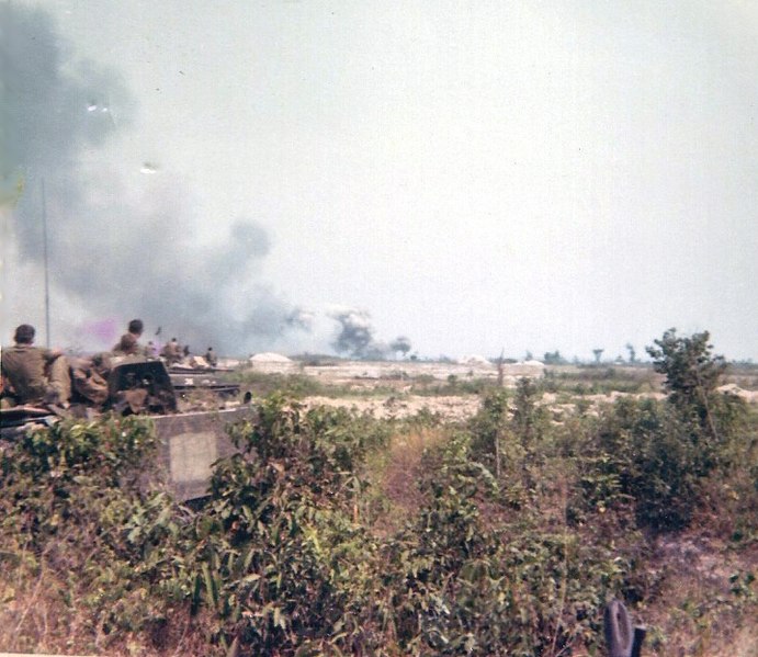 Note 1: Entries that include an exact time or grid coordinates have been extracted from offical documents. If no time is provided it is a recollection from a unit member. Note 2 Email us and provide additions or corrections for this timeline. Feb 23 Summary: M551 crews complete training & M551s rejoin troop in field. A Trp sweeps & outposts MSR. Escorts convoy. Establishes NDP and a platoon strong point. One Plt moves to Go Dau Ha bridge. 0029 A Trp has a negative SITREP. 0440 A Trp is sending 1 plt to the Go Dau Ha bridge (photo) to relieve B10. B Trp is being sent to FSB Diamond. 0445 A10 is departing NDP. 0504 A30 is at CP18. 0510 A20 is at CP06. 0536 A10 has relieved B10 at the Go Dau Ha bridge. (photo), (photo) 0700 A20 starting road sweep south. 0719 A Trp sweep at CP R. 0723 Notified that there will be no convoy today. 0730 SPOTREP: LA A23; LB road obstacle; LC XT478221; LD 2 tangled rolls of old wire spread across road; LE not booby trapped. 0806 A Trp trains at CP05, feeding the troops. A Trp sweep CP07 to CP12. 0810 SPOTREP: LA A Trp; LB booby trap; LC XT383248; LD 100' of electrical cord, 18 flashlight batteries, attached to 2 red warheads. 0827 A Trp reports activitiy at CP 18 is normal. From CP B south into Trang Bang less people in fields and more in village. 0839 A Trp trains entering FSB. 0935 A Trp M551s enroute to A Trp's field location. 1540 A Trp(-) NDP at XT457271. A20 plt strong point at CP B. 1550 A10 at the Go Dau Ha bridge has been relieved by C10. 1805 A Trp LPs are in position. 1823 Cu Chi Dust-off being sent to A Trp for 1 man with hepatitis. 1905 A Trp dust-off is complete. 1946 A Trp rpts on 80 degree azimuth observed red star cluster, lots of fire, believes someone in contact. 2030 A Trp rpts that vic of XT467239 the ARVN compound is being hit, sees AW fire & AK47 fire. 2058 A Trp LP positions are XT455263 & XT458277. 2135 A Trp LP has individual walking towards the LP, will engage when closer. 2205 SPOTREP: LA A20; LB 3 individuals; LC XT459253; LD spotted with starlight scope, engaged with coax, possible 3 BC. 2232 Cu Chi has been put on Red Alert. 2259 2 PCs sent to Cu Chi main gate. Bunker line has been reinforced with all personnel. 2341 A Trp has a negative SITREP. Feb 24 Summary: LT Moore returned to duty from 12th Evac Hosp and reassigned to Troop XO. A Trp sweeps & outposts MSR. Escorts convoy. Establishes NDP. 0020 A Trp has a negative SITREP. 0535 A Trp stand-to is complete. 0700 A Trp starting road sweep. 0715 SPOTREP: LA A Trp; LB propaganda; LC XT462247; LD 14 leaflets, POW type, VC calendars. 0748 SPOTREP: LA A Trp; LB RPG pack; LC XT468233; LD made of burlap, bloodstained. 0832 A Trp trains departing NDP enroute to FSB Hampton. 0902 A Trp trains entering FSB Hampton. 1036 SPOTREP: LA A Trp; LB sniper rds; LC XT480218; 1329 A Trp reports villagers in Vic CP05 are moving out. 1801 A Trp rpts trail of convoy at CP19. 2010 A Trp radar status: 2477 mils, 0523 mils at 1500 meters. 2137 SPOTREP: LA A Trp; LB 51 cal tracers; LC XT442242 at 2133 hrs; LD tracers being fired at 3 choppers. 2325 A Trp LP at XT457268 has spotted movement 500 meters from position. Will call Arty. 2355 A Trp rpts a labretta spotted by LP has disappeared. Individual spotted by other LP is still being observed. 2359 A Trp has a negative SITREP, no change. Feb 25 Summary: A Trp sweeps & outposts MSR. Escorts convoy. Establishes NDP. 0030 A Trp requests a Firefly at XT472280 to XT420250. Has 1 individual spotted and believe more. Has radio & radar jammed for last 30 minutes. 0034 A LFT is also requested for same target. 0113 A Trp LP at 0100 engaged an individual that was 25 to 50 meters from their position. 1 possible BC. 0126 LFT from Diamondhead enroute to A Trp location. 0138 LFT diverted back to Cu Chi for a strip alert. A Trp will call Arty. 0548 A Trp stand-to complete. 0658 A Trp departing NDP for road sweep mission. 0705 A30 sweeps from NDP to CP07. A10 will relieve C Trp at the bridge & sweep from NDP to CP12. 0739 A20 is outposting 500 meters north of XT436316. 0753 A30 is at XT488205. 0751 A10 has relieved C Trp at the bridge (CP05). 0752 A Trp trains departing the NDP. 0831 A Trp trains entering FSB. 1122 A Trp rpts people leaving Go Dau Ha going west over the bridge. 1450 A Trp rpts radar is operational. 1742 A Trp element at CP B has been relieved by B Trp. 1805 A30 is entering FSB. 2037 A Trp reports that agent states there are two battalions of VC 4000 meters SW of the Go Dau Ha Bridge. 2257 SPOTREP: LA A Trp; LB movement; LC XT413241; LD 3 people setting up something; LE observing. 2330 A Trp has a negative SITREP. Feb 26 Summary: From 25th Division Operations Summary -Rocket, mortar, & sapper attack on Cu Chi base camp. A Trp located at XT413241 will sweep Hwy QL1 from XT483196 to Go Dau Ha, sweep Hwy QL22 from Go Dau Ha to XT349336, and sweep alternate MSR from Go Dau Ha to XT453288. 0353 Cu Chi Base Camp under rocket, mortar, and ground attack by elements of the B 16th Sapper Bn COSVN, 1st Front Division, and the 9th Div. One of the enemy objectives is to destroy the M48 tanks from the squadron which were parked between A Troop and the perimeter. 0405 Cu Chi under mortar attack. 0441 Mission to 3/4 Cav to alert one troop for possible commitment to Cu Chi area. 0510 D Troop moving aircraft out of Cu Chi to other airfields. 0553 A Trp stand to is complete. 0605 Maj Maharry reports that 3 of A Trp tanks took direct RPG hits while in secondary position (M48A3s awaiting turn-in). 0610 Update from Cu Chi they have 3 body count between bunkers 69 and 70, 3 WIA friendly (2 minor & 1 to 12th Evac Hosp), A Trp supply hit with RPG rounds and severely damaged. (photo), (photo) 0657 2nd Plt A/3/4 Cav starting sweep. 0703 3rd Plt A/3/4 Cav starting sweep. 0710 2nd Plt A/3/4 Cav at CP 19. 0714 3rd Plt A/3/4 Cav at CP 05. 0720 2nd Plt A/3/4 Cav at CP 07 & 3rd Plt A/3/4 Cav at CP 21. 0721 1st Plt B/3/4 Cav at CP 05 to relieve 1st Plt A/3/4 Cav on the bridge. 0725 3rd Plt A